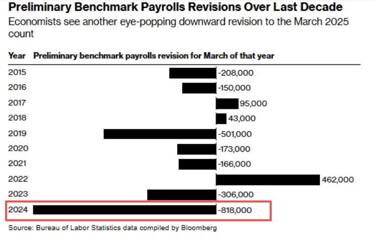 虽然此次修订涉及的是历史数据,但大幅下修将证实去年劳动力市场动能远逊于预期,进一步强化市场对美联储启动一系列降息的预期。