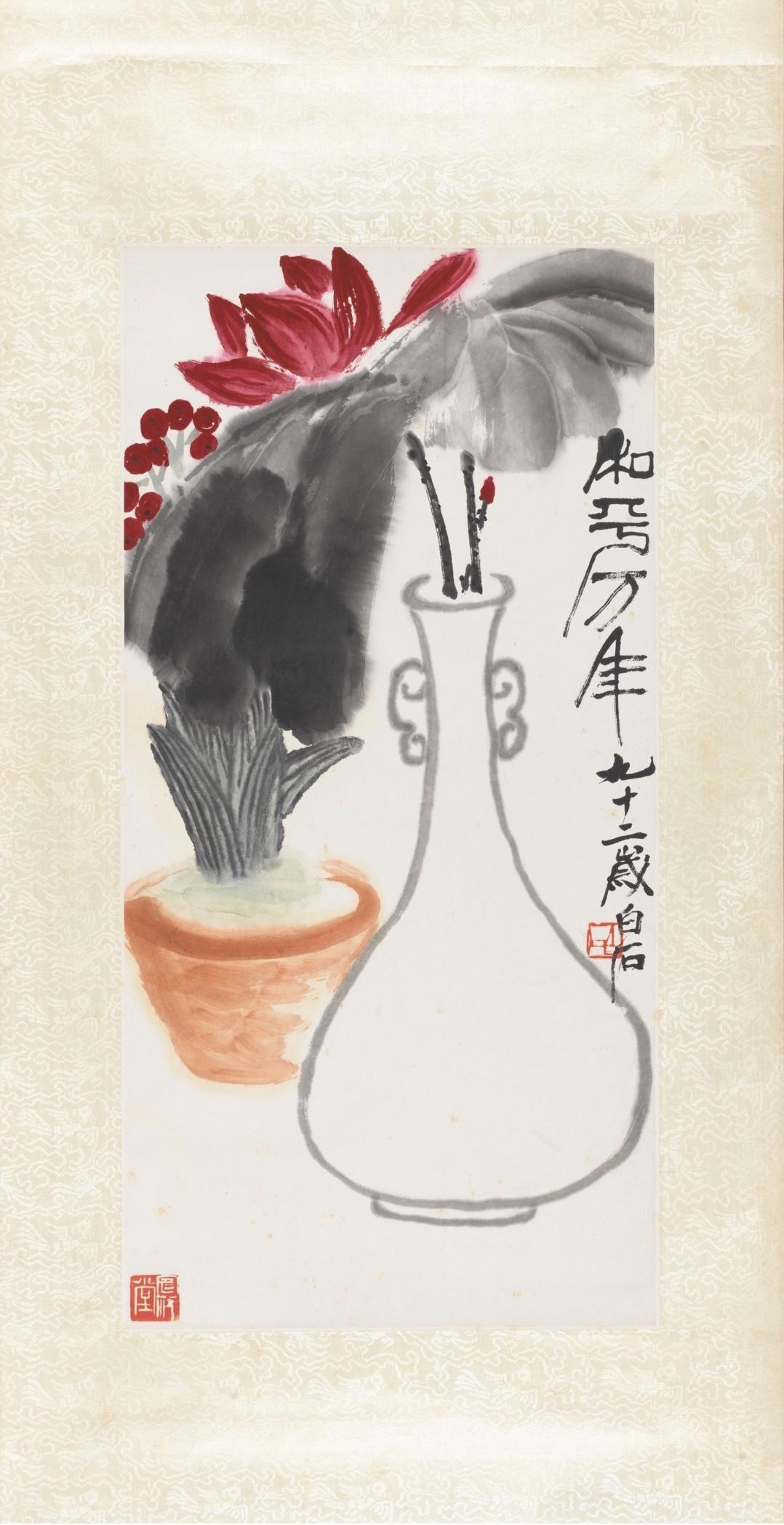 其中有一幅国画大家作品——齐白石的《和平万年》。